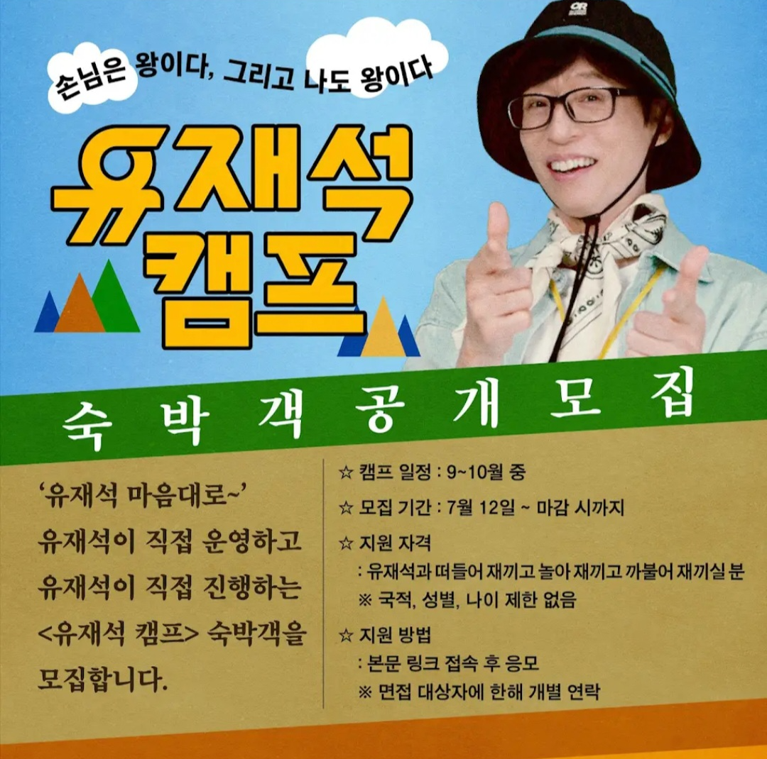 7월 12일부터 숙박객 모집이 시작되며 본격적인 프로그램 준비가 진행됩니다. 유재석은 공식 영상에서 “넷플릭스에서 선보이는 색다른 시도! 제가 캠프를 오픈합니다”라고 첫 인사를 전했습니다. 이어 “손님은 왕이다. 그리고 나도 왕이다. 저랑 같이 놀고 싶은 분, 지금 바로 신청하세요”라며 그만의 친근함과 유쾌한 위트를 동시에 뽐냈습니다.
