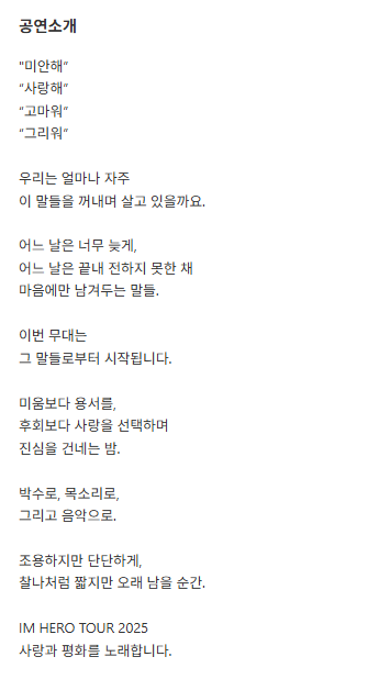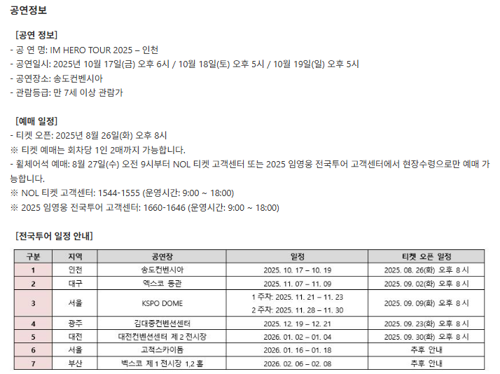 - 공연명 : IM HERO TOUR 2025 – 인천